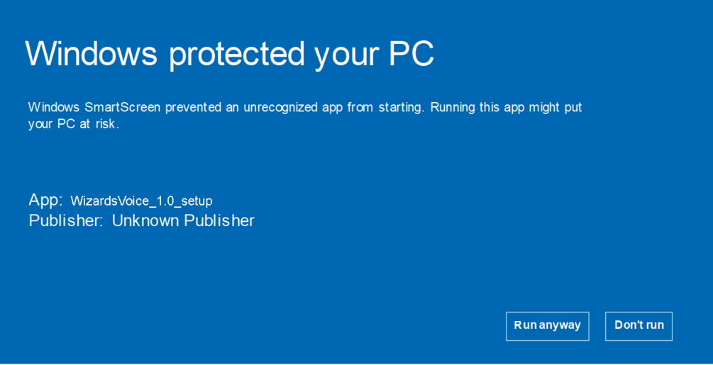 It is likely that windows will warn you about a potentially harmful application before the installation process (see fifth image). This is because I can't afford to sign the executable file. I promise it will do no harm to your system and you can safely install it. To continue the installation click on "more info" and then "Run anyway".